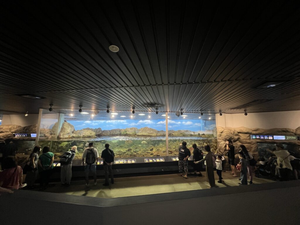 川の源流から海までを再現し、そこに生息する生き物を展示しています。