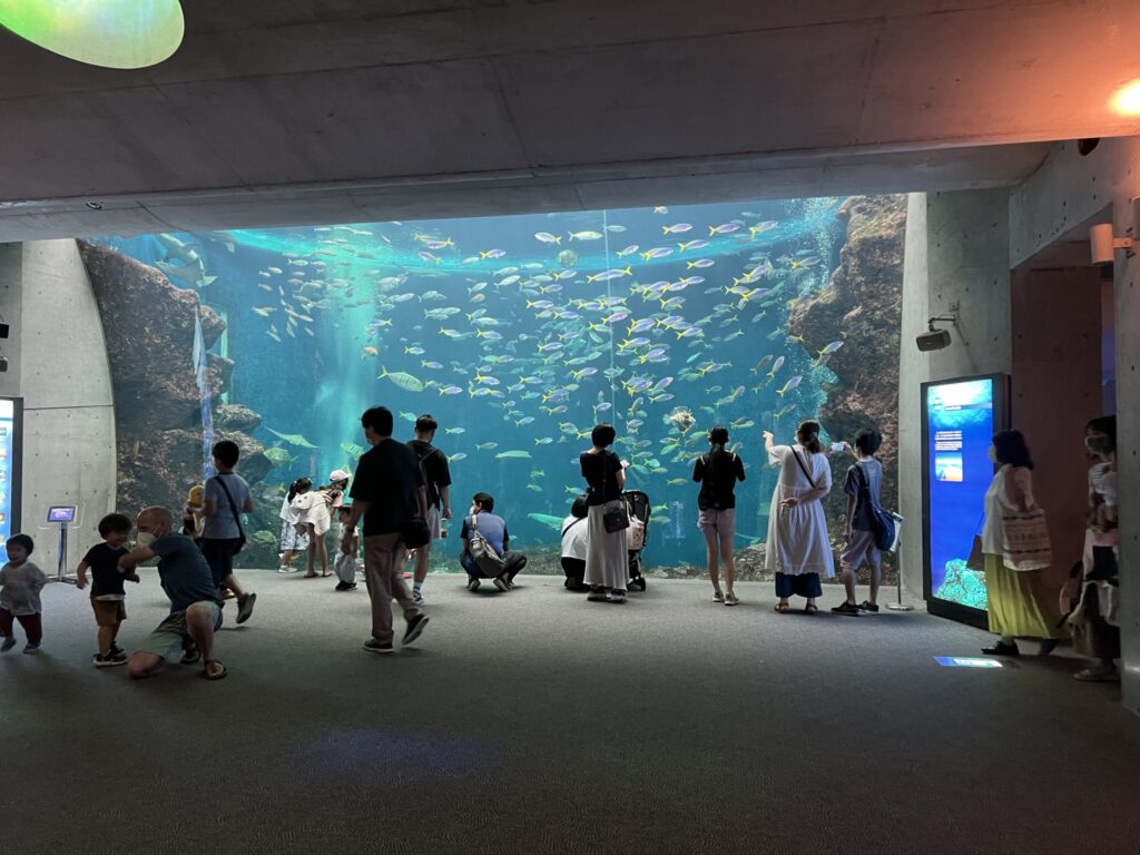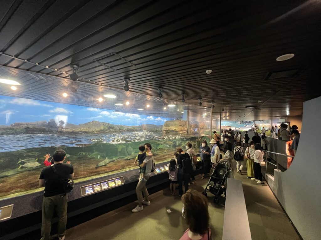 高さ7.5mの巨大水槽は、まるで海を真横から切り取ったかのような圧巻の展示。