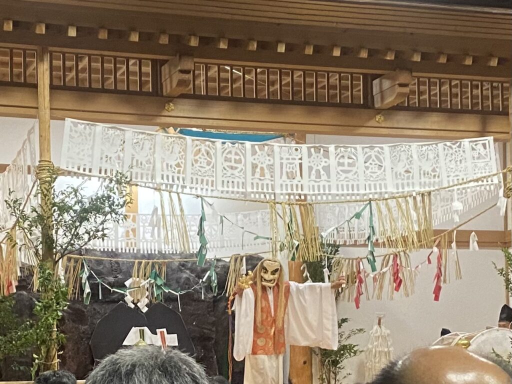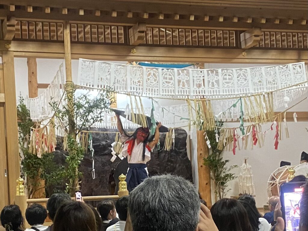 33種類の神楽の中から4演目を披露してくれ、それぞれの物語性と幻想的な演出が印象的。