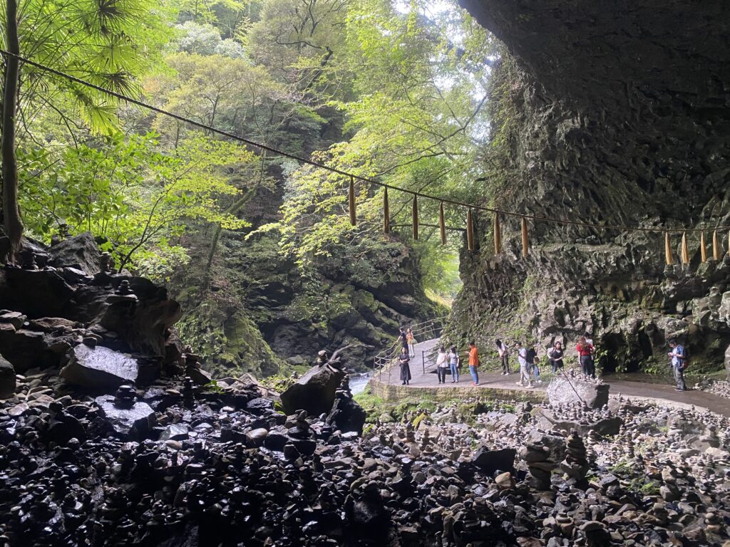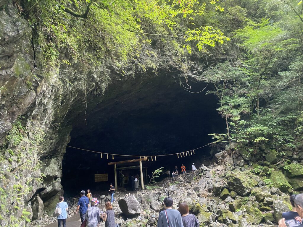 神話「天岩戸」で有名な天岩戸神社を訪れ、神職の方の案内で神聖な天岩戸を向かい側から参拝。
