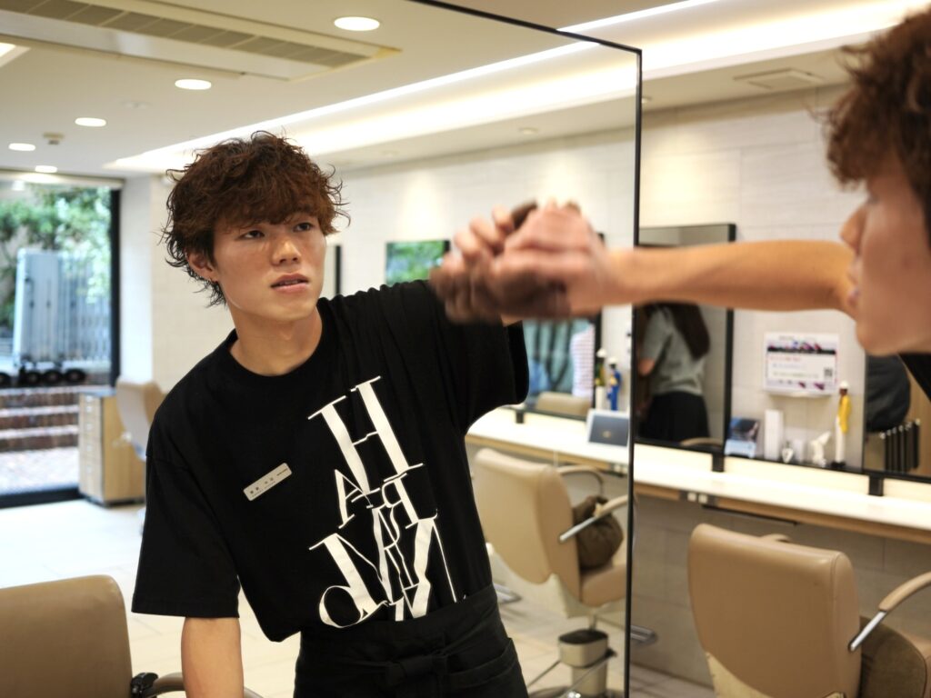 就活中は、僕自身がもともとその大手のサロンに働きたいっていう夢があって有名サロンっていうのを基準に自分に合ったサロンを探してて選んだっていう形で決めていました。有名サロンで働きたいっていうのを意識して。場所も、東京がいいなと思っていました。