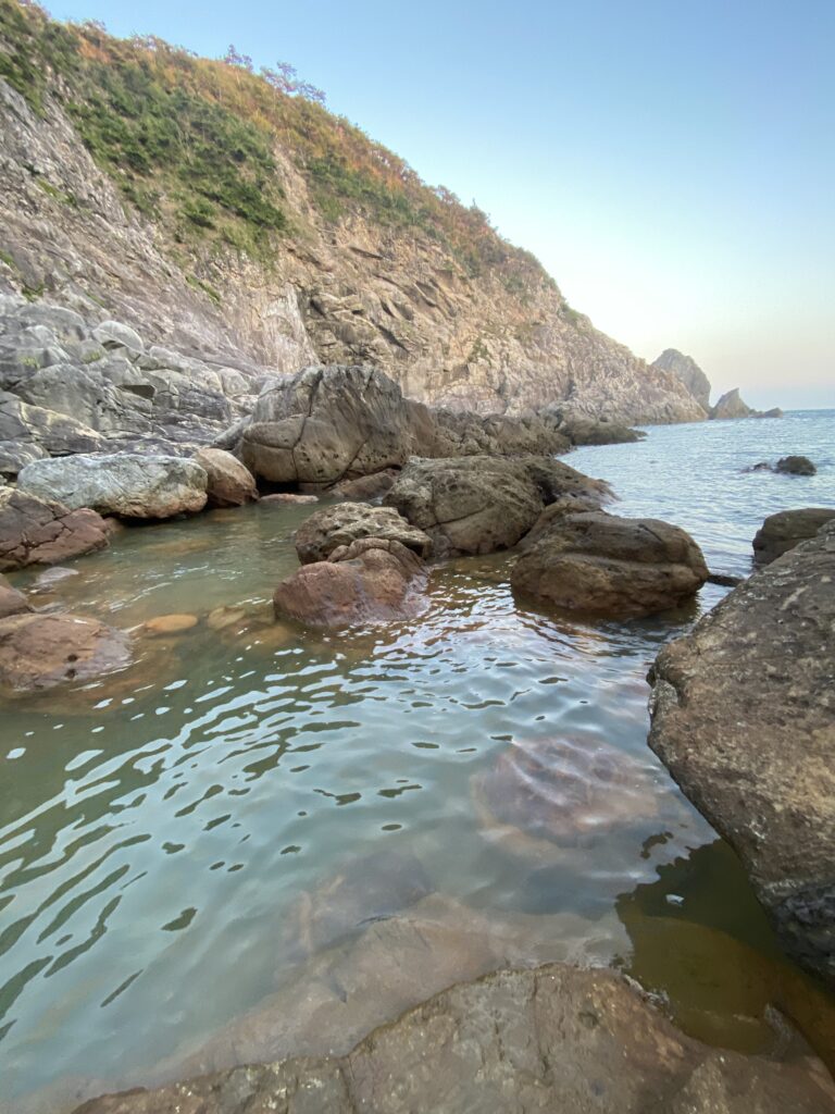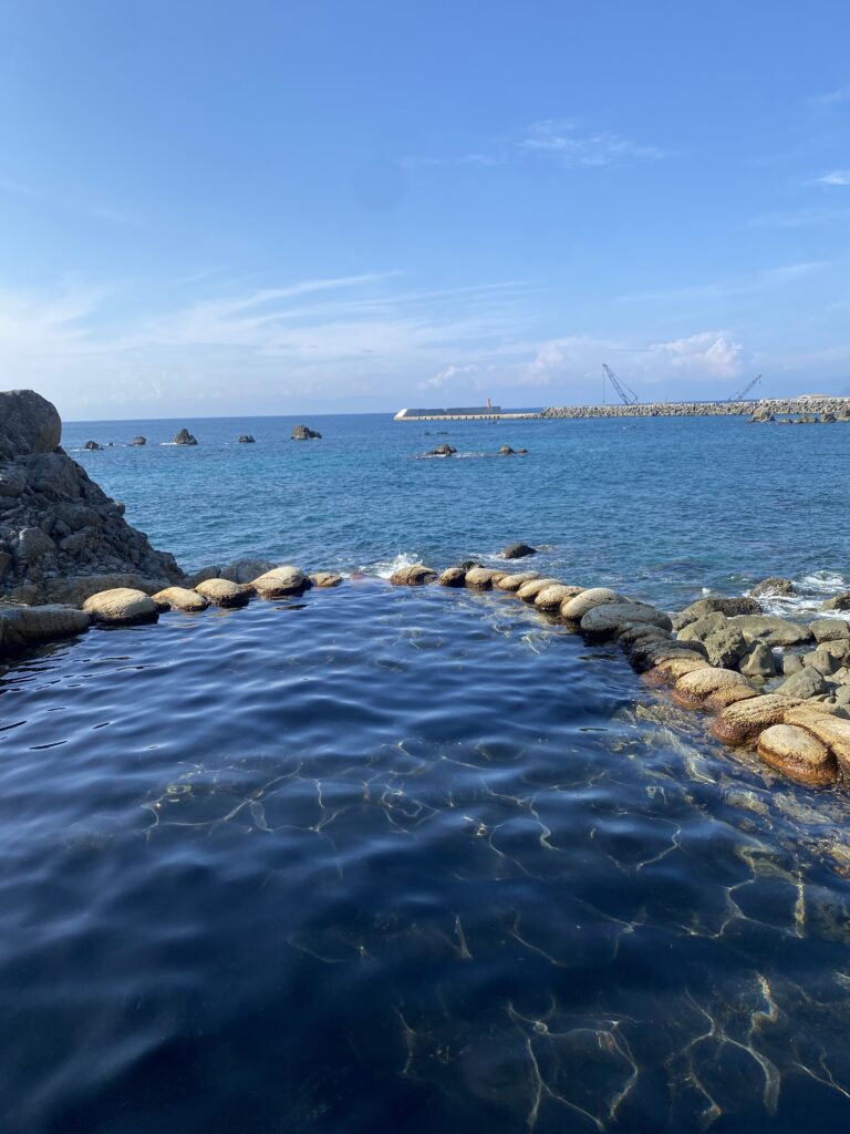 岩に囲まれたワイルドな温泉で、海と源泉が混ざる天然の湯。潮の満ち引きで温度が変わるため、自分で“ちょうどいい場所”を見つけるのが楽しい!