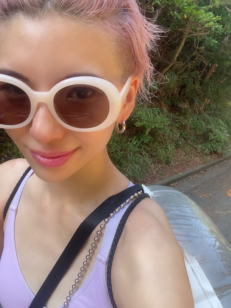 チェックインしてすぐ水着に着替え、浮き輪を持ってレンタサイクルへGO!
