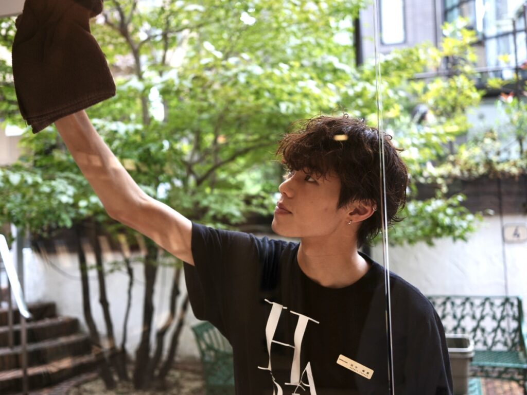 PEEK-A-BOOにした理由は、学校の先生に「有名サロンどこかありますか?」って僕が聞いた時に、「PEEK-A-BOOがいいんじゃないかな」って言ってくれて、そこからPEEK-A-BOOを知り、お客さんとして実際に、一回髪をカットしに行って施術されて、感動してここだな!って自分の中で思ったので決めました。