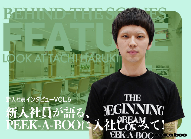 PEEK-A-BOOリクルート企画で、これから就活を始める美容学生に向けてメッセージを送るために、半年間働いた1年目の城くんにインタビューを行います。城くん、自己紹介お願いします。