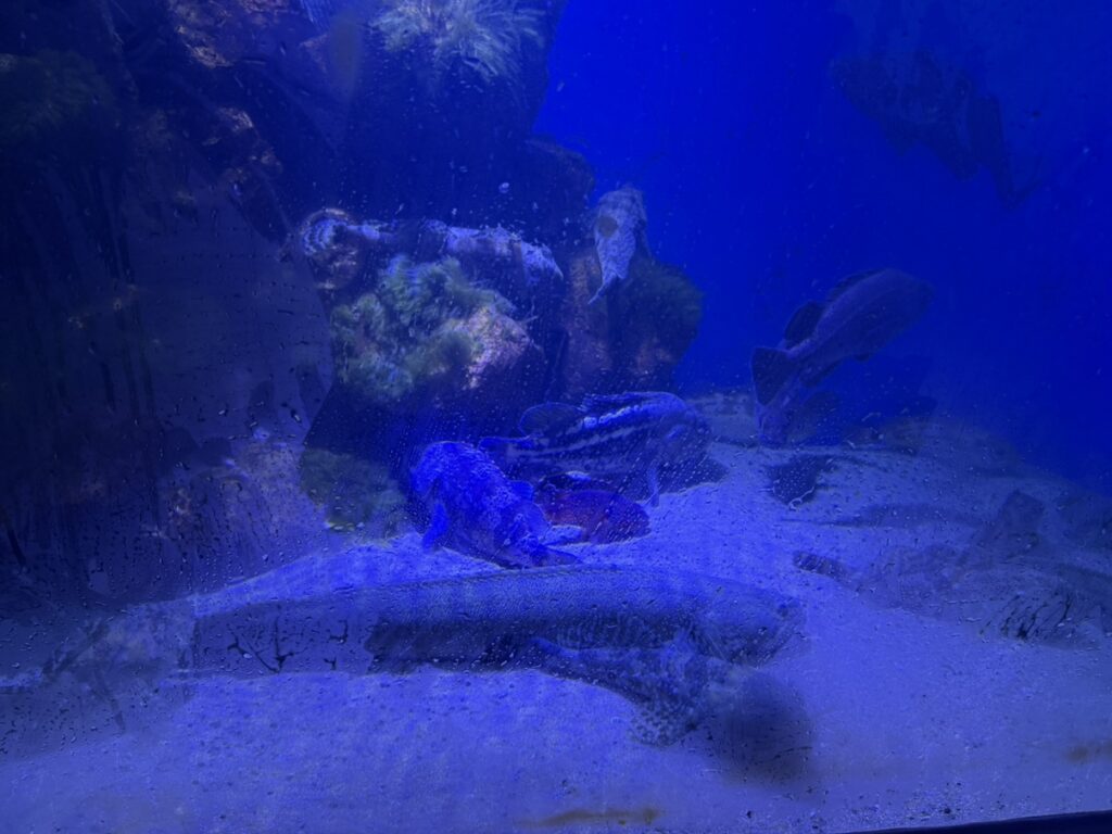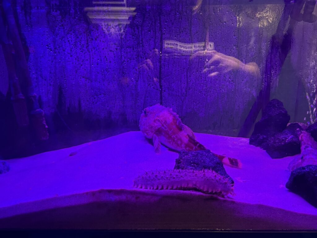 冷たい海水を使ってるので結露してる水槽がたくさんありました。