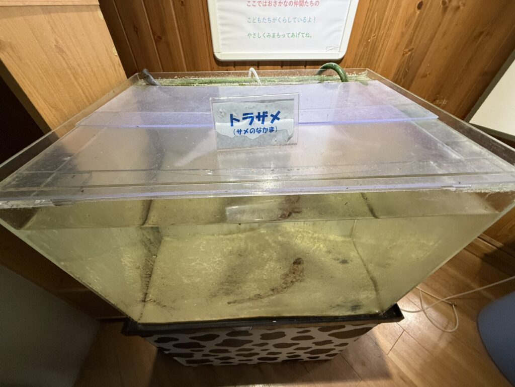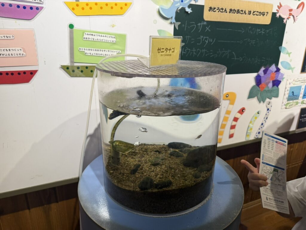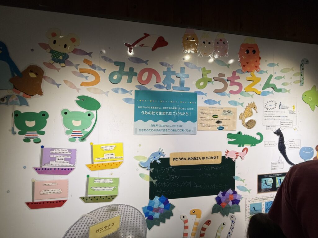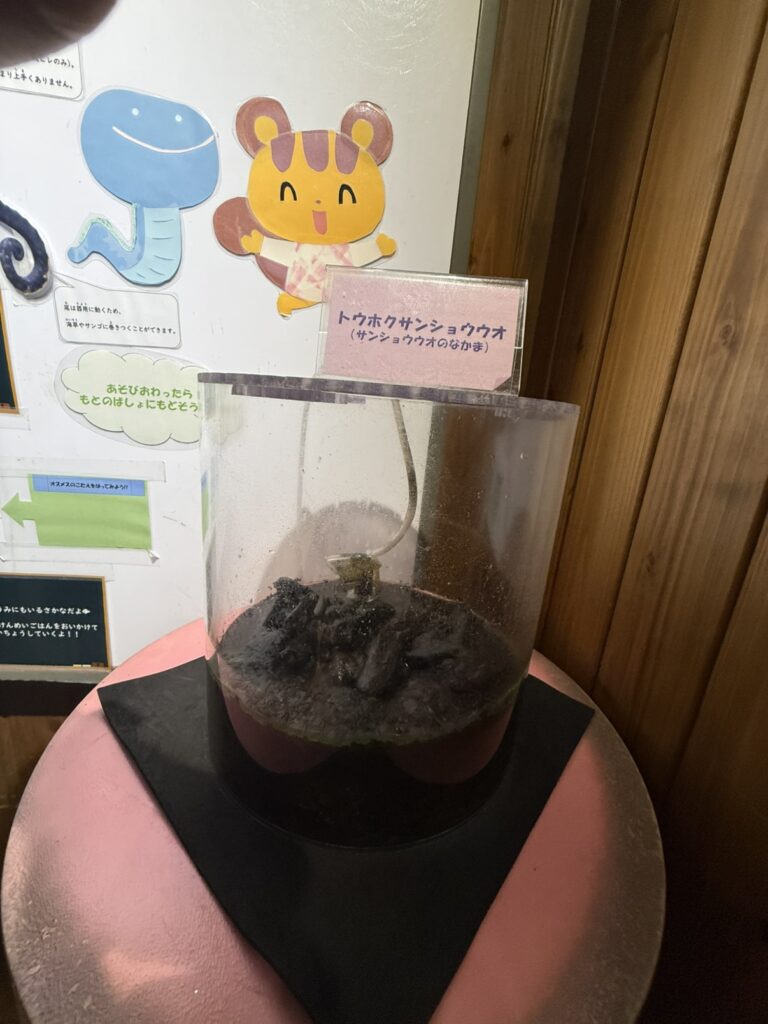 ここでは仙台うみの杜水族館で繁殖が成功した生き物を展示しています。今回行った時はトラザメ、ゼニタナゴ、サンゴタツ、トウホクサンショウウオの赤ちゃんが展示されていました。