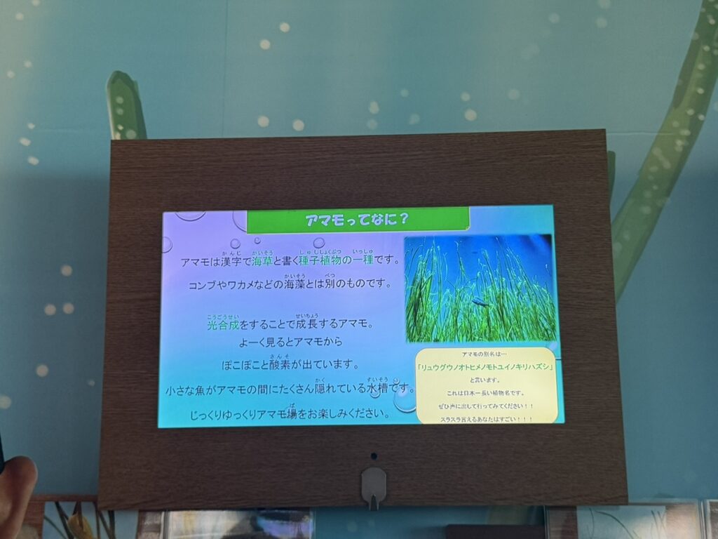 アマモが海でどのような役割を持ってるかわかりやすく展示してるエリア